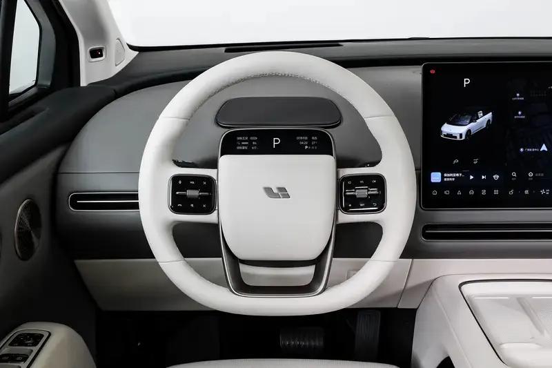内饰方面,新车整体延续了家族式设计理念,并采用了环抱式的座舱设计。新车方向盘继续沿用了家族式设计,在中间拥有一块液晶显示屏,科技感十足。值得一提的是,理想i8首次采用了白色的方向盘设计,和整体以浅色为主的内饰颜色更加匹配。