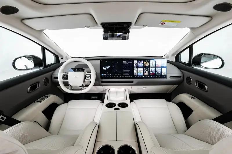外观方面,新车整体采用了全新的设计,整体看起来极具高级感、科技感。官方也表示,新车的设计语言将是下一代纯电SUV的设计方向。新车取消了双A柱设计,并采用了大角度倾斜的前风挡玻璃;此外,新车也将采用了全新设计的半封闭式轮圈、隐藏式车门把手等,进一步降低该车的风阻系数。