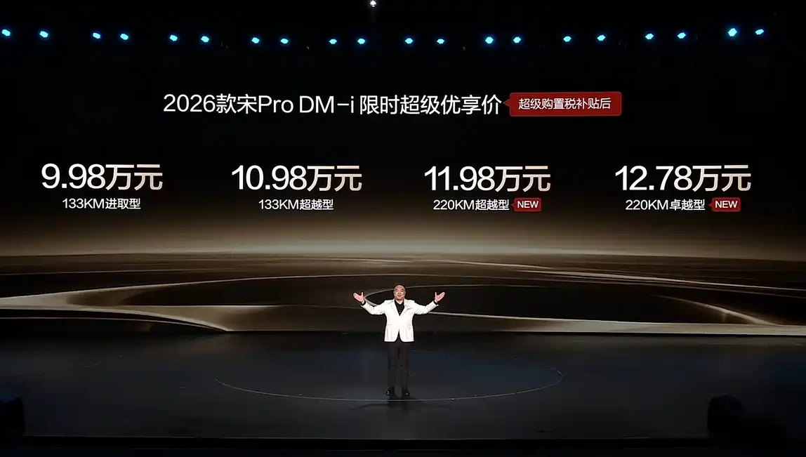 咱们先以秦家族为例,秦PLUS DM-i至今仍是紧凑型轿车市场的销量标杆,这次2026款将提供三款配置可选,指导价区间为7.98-9.98万元,只能说一如既往的亲民,因为入门版车型的纯电续航里程也提升至128km,中高配车型更是达到210km。另外就像刚才所说,原本10万级以内的混动车型普遍是纯电续航100km左右,现如今秦PLUS DM-i直接来到210km,哪怕是每天通勤三四十公里,一周一充也不再是问题,所以这次2026款其它地方没有任何改动也无所谓,就这一招足以让竞品无还手之力。