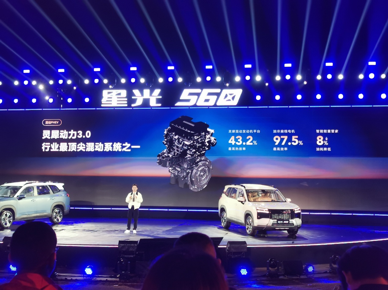 插混版采用灵犀动力3.0技术,搭载1.5L自然吸气发动机与10合1混动电驱系统,发动机最大功率78kW,最高热效率达43.2%,驱动电机最大功率145kW,峰值扭矩230N·m,匹配20.5kWh磷酸铁锂电池组,CLTC纯电续航125km,满油满电综合续航超1100km,亏电油耗仅5.3L/100km。
