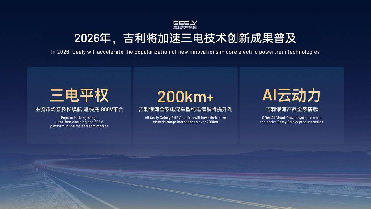 四大品牌将深化资源共享、协同发展的品牌战略,以更高的产品价值,形成支撑吉利汽车集团高端化发展的完整产品体系,为每一位用户打造超越期待的出行体验。根据规划,吉利在2026年每个季度都将推出1—2款全新产品,覆盖从主流到豪华、从燃油到新能源的各个细分市场。
