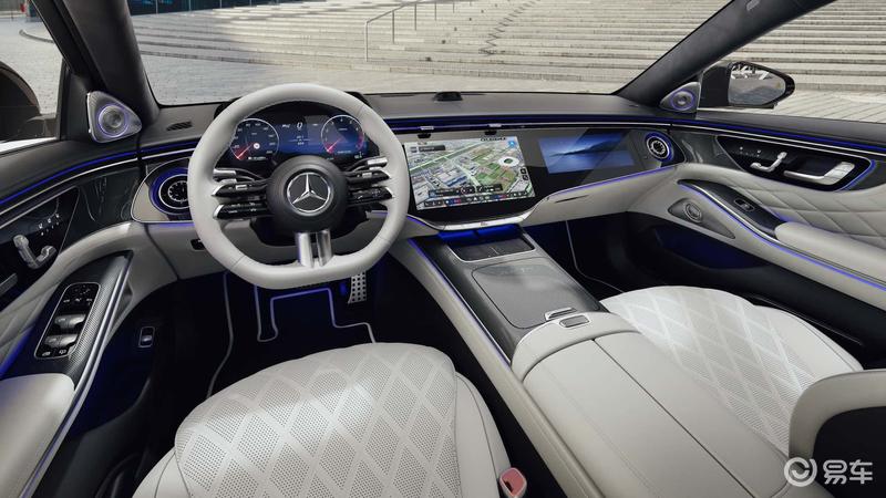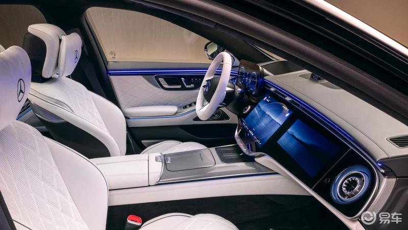 造型方面,新一代S级前脸首次采用发光格栅设计,尺寸增加约20%,横向镀铬辐条由3条增至4条,更宏大的体量塑造出更具辨识度的威仪风范,新车首次应用发光三叉星徽立标,与3D镀铬星徽格栅交相辉映。此外,前大灯首次采用“双星徽”造型,与两侧各有3枚镀铬边框星徽的尾灯前后呼应,当驾驶者靠近车辆时,灯组即刻闪耀致意,辅以侧裙投射于地的“Mercedes-Benz”迎宾光毯。