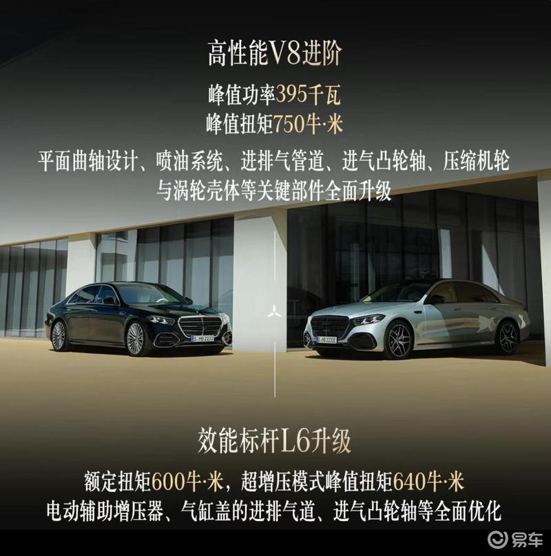 两款发动机均配备17千瓦ISG智能电机及48伏轻混系统。AIRMATIC空气悬挂系统和智能魔术车身控制系统均配备了具有专利技术的“智能底盘路面记忆功能”,可通过梅赛德斯-奔驰智能云获取来自其他车辆的Car-to-X路况信息,实时“预瞄”路面并提前调节阻尼,主动化解冲击。后轮主动转向系统提供双向各10度的转向角,令转弯直径缩减近两米,在狭窄街巷中灵巧穿梭,而在高速巡航时则具备卓越的稳定性。