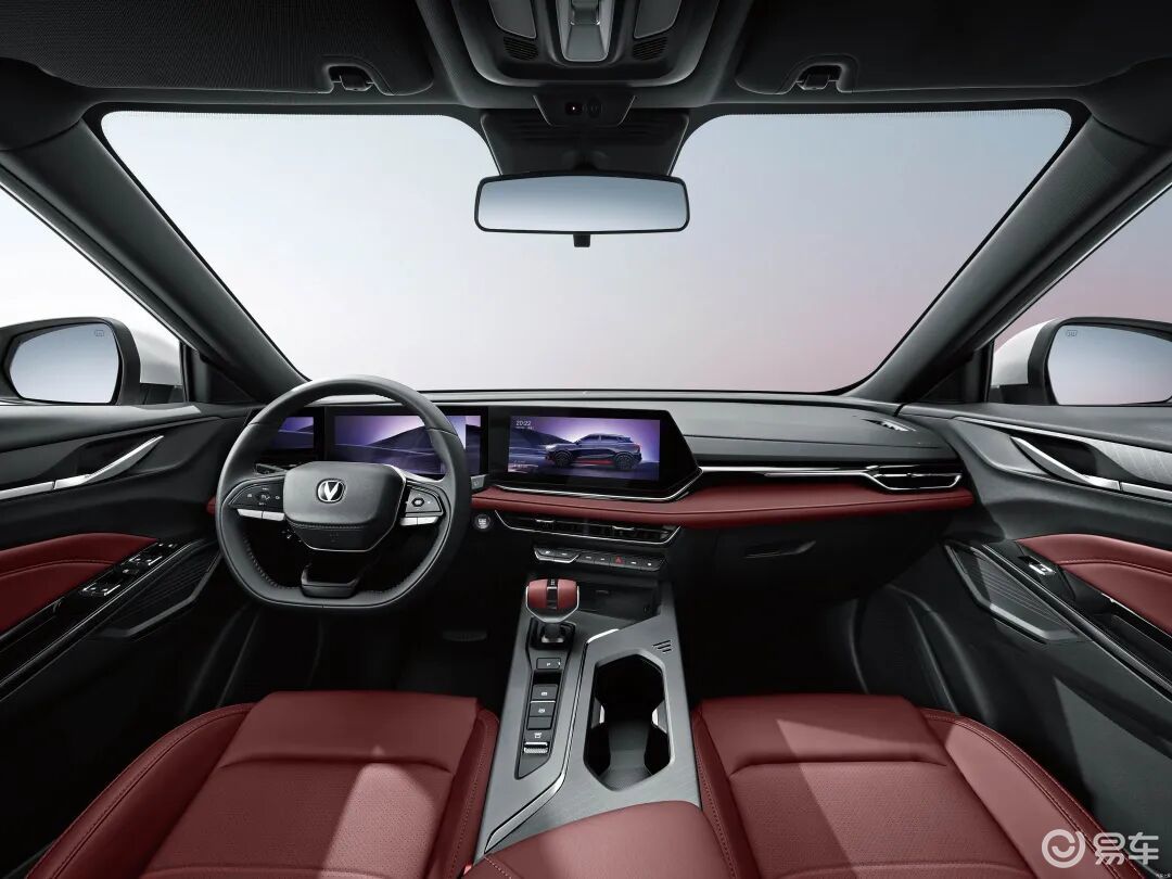 长安X5 PLUS 的内饰则主打运动时尚,整体布局以驾驶员为中心,中控台明显向驾驶位倾斜,让日常操作更得心应手。车内采用年轻化的配色方案,大面积软性材质包裹搭配精致的缝线工艺,兼顾了质感与运动氛围,双联屏的设计也让科技感扑面而来。车机系统支持智能语音交互、手机互联等功能,能够满足年轻用户对智能用车的需求。