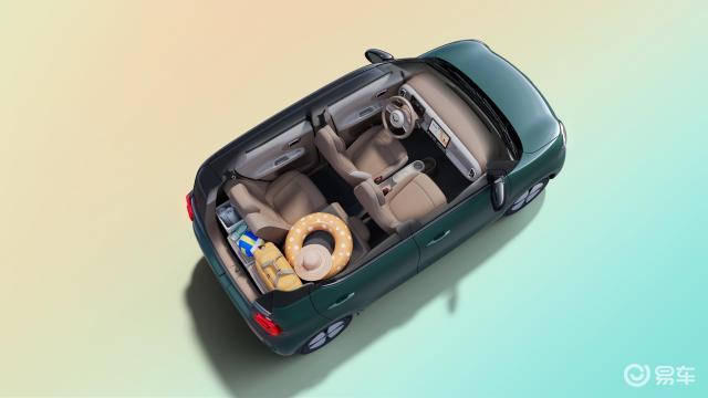 空间部分,第五代宏光MINIEV还升级为了同级唯一采用四门四座设计的车型,长宽高分别为:3268×1520×1575mm,转弯半径仅4.5米,哪怕是老小区的窄路、商场的迷你车位,也能一把入库,城市穿梭灵活自如。并且得益于四门+前后排座间距793mm的关系,多人同行上下车从容不迫,再加上20处实用储物空间,后备厢最大可拓展至838L,从日常通勤代步,再到户外露营、好友聚会等场景,第五代宏光MINIEV都能满足。