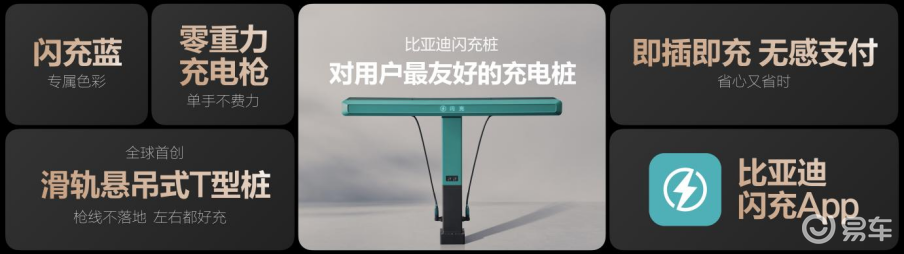 创新的"滑轨悬吊式T型桩"设计解决了传统充电桩线缆笨重、易脏污的问题,实现了"零重力充电枪"的极致体验。通过比亚迪闪充APP,用户可享受"即插即充,无感支付"的便捷服务。