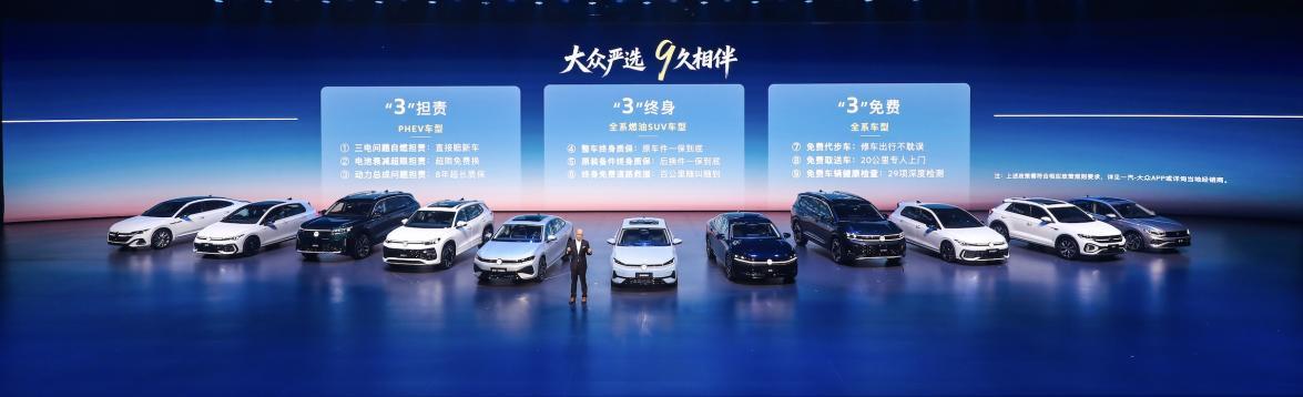 作为拥有35年发展积淀、超3000万用户基盘的合资品牌,一汽-大众始终将用户服务放在核心位置。本次发布会上,品牌重磅推出“大众严选 9久相伴”专属承诺,以“三担责、三终身、三免费”九大权益,覆盖用户用车全生命周期,用实实在在的服务,为用户带来大厂独有的确定性与安心感。