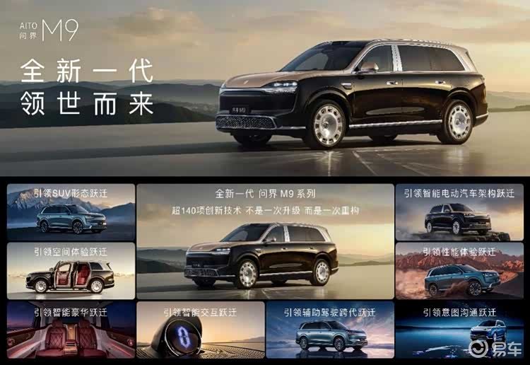 全新一代问界M9系列实现八大引领式进化,覆盖外观形态、空间体验、智能交互、智能豪华、智能电动汽车架构、性能、辅助驾驶、意图沟通,同时发布问界M9 UltiMate领世加长版本,一体两态,气蕴两仪,科技旗舰再跃迁。