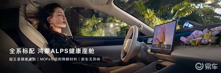 全系标配鸿蒙ALPS健康座舱,MOFs可吸附降解材料配合水离子空调,持久净化、锁水保湿,精致时刻在线。6.5L风冷无霜冰箱,温域覆盖- 6℃至50℃,轻松实现冷热饮自由。主副驾双零重力座椅,支持加热、通风、按摩,后排座椅同样标配加热、通风,座座皆舒适。可选装EC智能调光天幕,遮光率99.91%,紫外线隔绝率99.9%,隔热率98.1%,无惧日晒,景色肤色全都出色。21扬HUAWEI SOUND,配合超级桌面空间音频,精准还原动听声音。