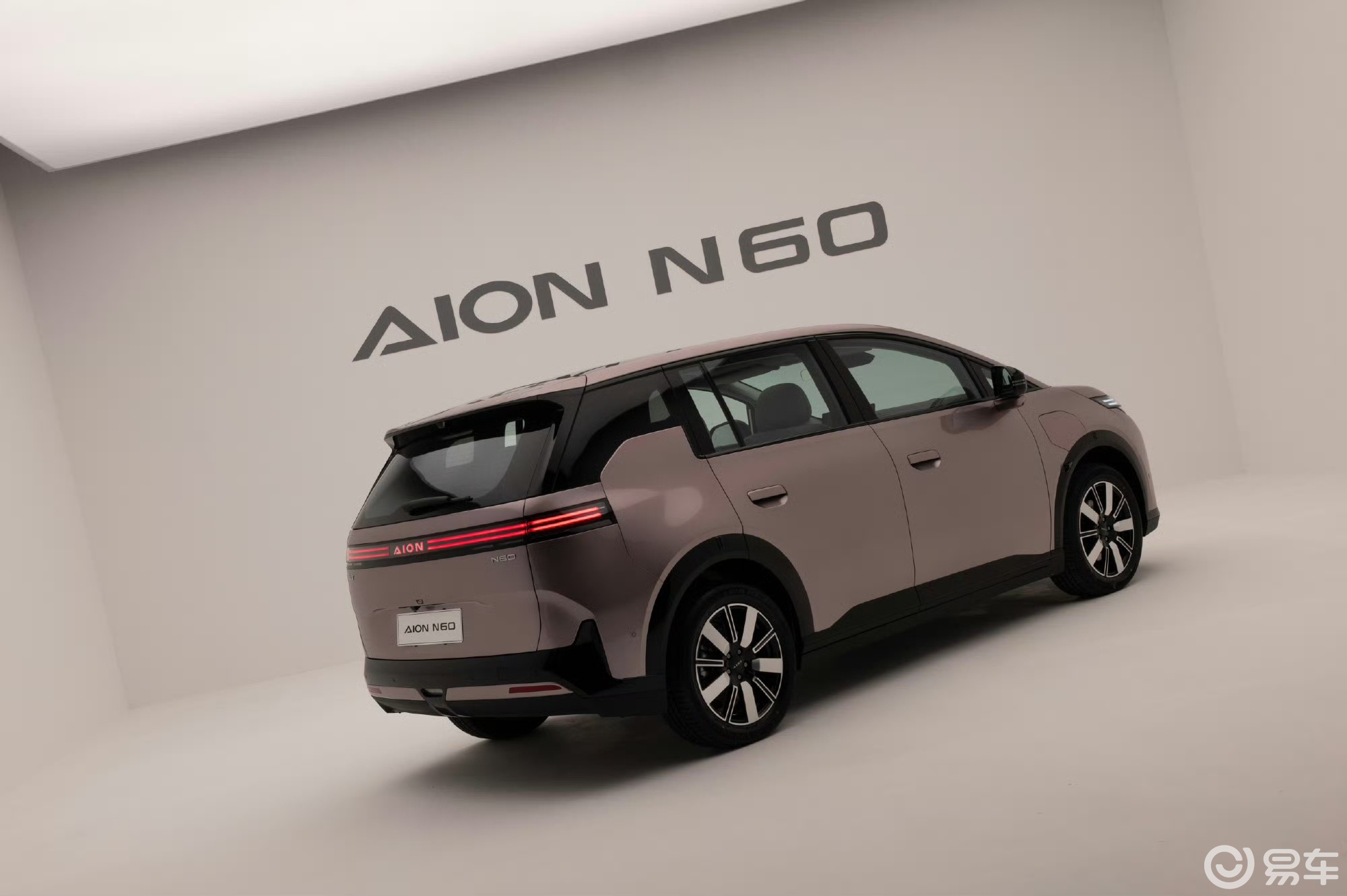 从产品本身来看,埃安N60采用全新的外观设计语言,其中前后灯组均运用简约式设计取向,点亮后呈现出双横式的视觉效果,位于中间的“AION”字母标识也可同步点亮。在此基础上,埃安N60的充电口设置在车身右前侧,全系搭载18英寸轮辋及215/55 R18轮胎。