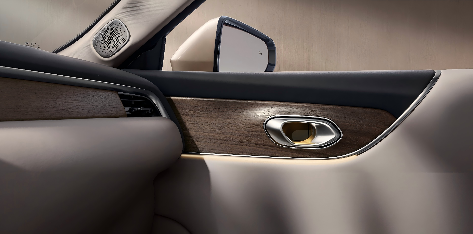 传祺向往S9乾崑还擅长营造高级氛围感,不仅前排座椅采用甄选超肤感Nappa材质,中控仪表台、车内门把手等位置选用黑胡桃真木饰板,处处体现轻奢质感。