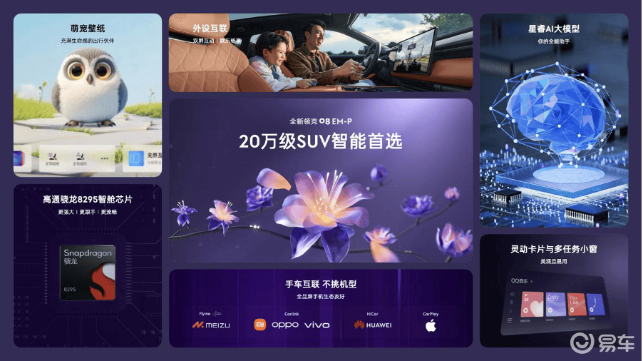 “2023年9月份,领克08上市的时候我们就说过一句话,希望我们的车机能够常用常新,硬件三年不用更新。”穆军表示,虽然全新领克08 EM-P换了一套全新的座舱、智驾,但在车机芯片算力上,双E04和8295的算力相差并不远,能够100%复刻Flyme Auto 2的核心功能。