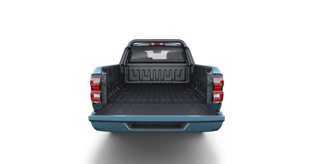 来到车身侧面,整体保持长城皮卡的家族设计风格,货箱位置采用与车身同色的龙门架。车身结构上提供标箱、长箱、平箱三种规格,平箱版内部则为纯平设计,深度达到1.82米,货箱内看不到任何凸起。还带有货箱照明。标配6个外绳钩和4个内绳钩,便于装载货物进行捆绑。后货箱尾板拉绳直径提升到8.0mm,拉力提升30%,离地间隙最高达236mm。
