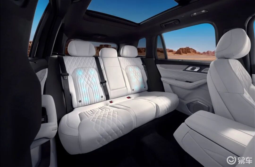 舒适性方面,副驾提供280mm一体式4向腿托,支持56°腿托最大调节角度。后排座椅提供通风/加热/按摩功能。用料方面,顶配车型采用NAPPA真皮材质,提供10扬声器BOSE音响系统以及ANC主动降噪系统。后备厢容积为691L,放倒第二排后为1522L。