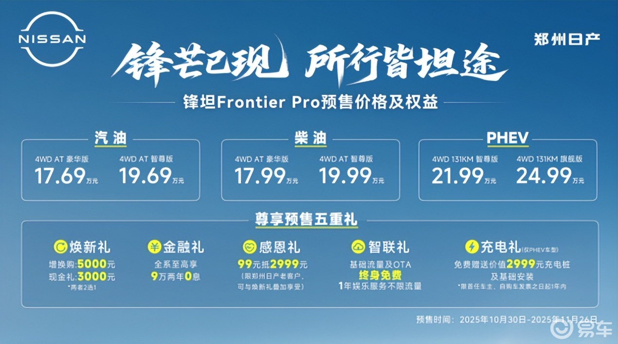 郑州日产作为将“Pick Up”译为“皮卡”的行业先驱,是行业公认的皮卡世家,其产品始终镌刻着硬核品质的家族基因。锋坦作为郑州日产“生于中国,面向全球”的首秀之作,由郑州日产中日研发团队共同打造,基于全球多元越野平台"星核",融合了行业领先的AHT全场景电混科技,采用燃油+混动的双动力阵容。