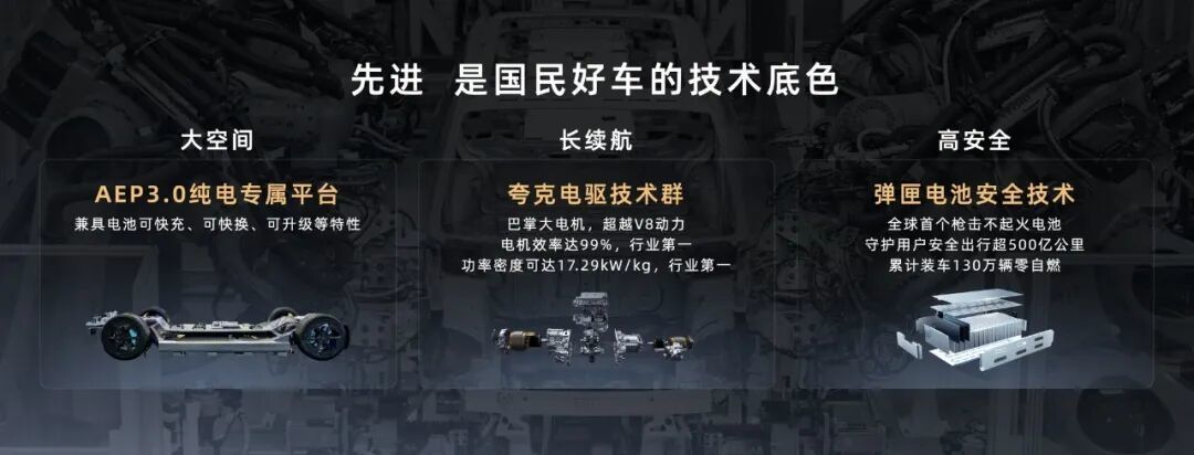 目前,星源增程技术已在20万以上豪华车型量产装车,怠速静音水平、油电转化率、电驱系统效率、持续发电功率、电机峰值效率、电机功率密度六项关键指标行业领先。埃安i60将星源增程技术带入15万以内,打造人人可享、处处好用的国民增程。