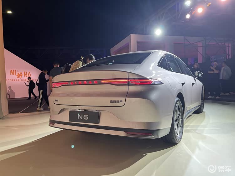 外观方面,东风日产N6的前脸采用极简设计语言,封闭式前脸配以细长的贯穿式日行灯,回旋镖样式的主灯组与星环式灯带相互呼应,底部搭配熏黑的小格栅和同色前铲,整体造型简洁利落。修长的车身比例不仅赋予其舒展高雅的姿态,而且奠定了新车的越级空间基础。