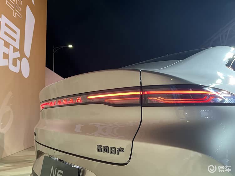 车身侧面配备了隐藏式电动门把手,线条流畅,搭配溜背式车尾。车身尺寸为长4831毫米/宽1885毫米/高1491毫米,轴距为2815毫米,比轩逸更大,属于中级车的尺寸。尾部的整体造型轮廓很简洁硬朗,尾灯使用了贯穿式轮廓,内部是条带形的光带光源,中间是能够点亮的字母车标。